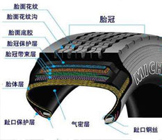 輪胎的類(lèi)型有:國(guó)際標(biāo)準(zhǔn)的輪胎代號(hào),以毫米為單位表示斷面寬度和扁平比的百分?jǐn)?shù)。后面加上:輪胎類(lèi)型代號(hào),輪輞直徑(英寸),負(fù)荷指數(shù)(許用承載質(zhì)量代號(hào)),許用車(chē)速代號(hào)。